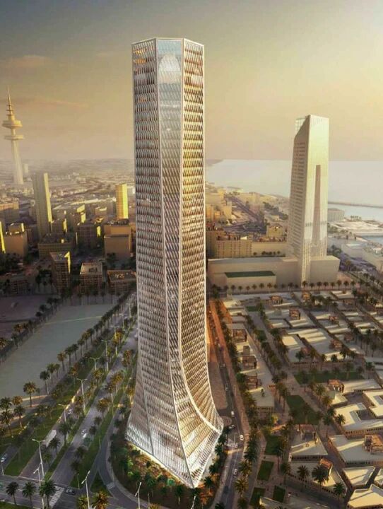 科威特CMA总部项目作为科威特城的新天际线地标,由国际知名事务所联合设计,以46层240米的渐缩八边形造型,融合几何美学与雕塑感,同时剑指LEED v4.0银级认证目标。