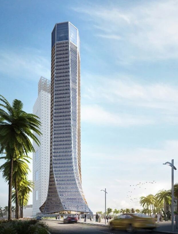 科威特CMA总部项目作为科威特城的新天际线地标,由国际知名事务所联合设计,以46层240米的渐缩八边形造型,融合几何美学与雕塑感,同时剑指LEED v4.0银级认证目标。