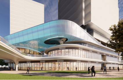 项目采用玻璃幕墙系统、铝板幕墙系统、石材幕墙系统、蜂窝铝板幕墙系统及IP点异形装饰等多种幕墙系统。其中,“智源之窗”、“纸飞机”、“活力广场”三大IP点作为项目的结构性亮点,均以金属材质塑造出独特的异形结构,以灵动前卫的艺术表现力,必将成为区域内备受瞩目的潮流打卡新地标: