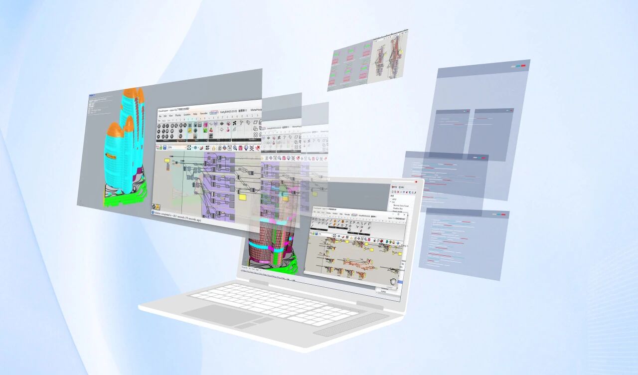 在实体加工开始前,一场设计技术革命已在沈阳远大的设计中心悄然展开。欧加大厦幕墙体系复杂多元,涵盖主楼单元系统、穹顶上下马鞍系统等多个核心系统,其中船头单元系统更是建筑外观的点睛之笔,传统设计方法根本无法应对。远大设计团队率先启用参数模型全生命周期协同体系,融合程序语言、数据库管理、数字化协同平台,搭载Rhino+Grasshopper参数化工具,把建筑师的设计灵感转化为可执行的工程语言。将200余万个曲面数据点转化为可调控模型,实时优化板块翘曲值,让每个单元都有精确的空间坐标和几何参数。